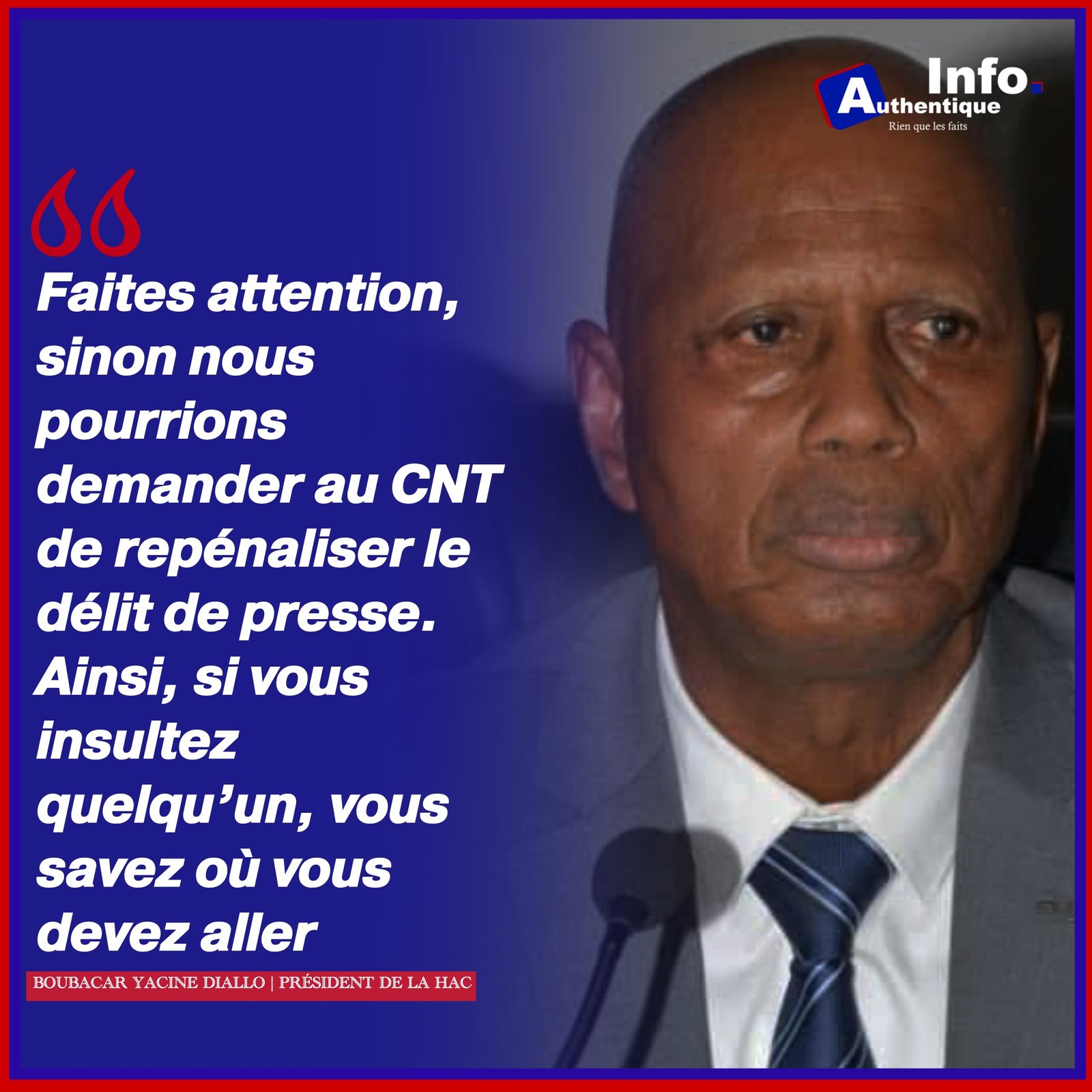 Le président de la HAC a conclu sur une note de mise en garde : « Faites attention, sinon nous pourrions demander au CNT de repénaliser le délit de presse. Ainsi, si vous insultez quelqu’un, vous savez où vous devez aller”, a-t-il prévenu.